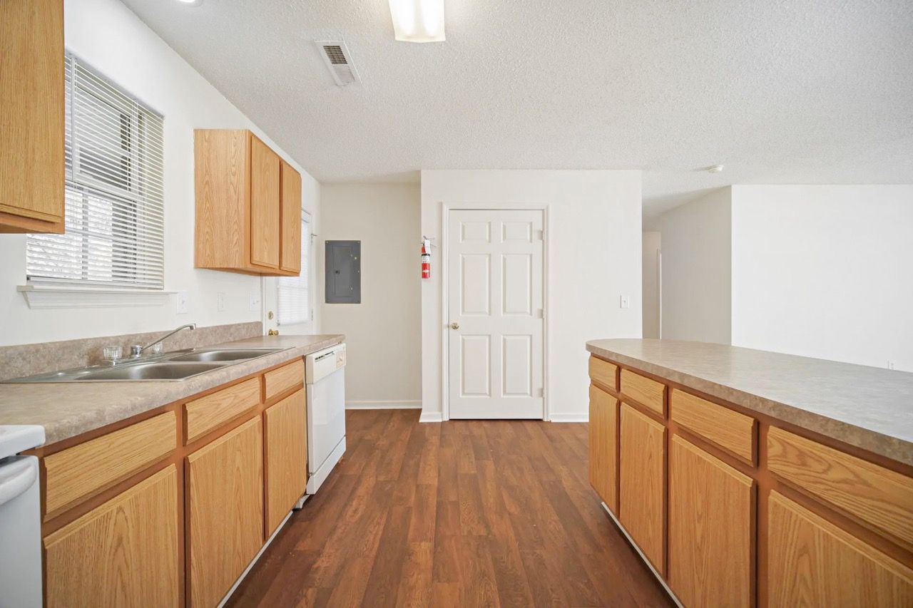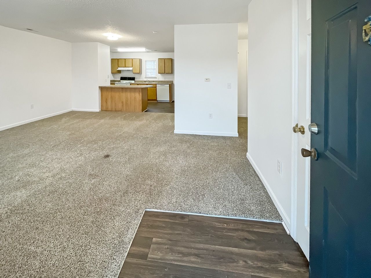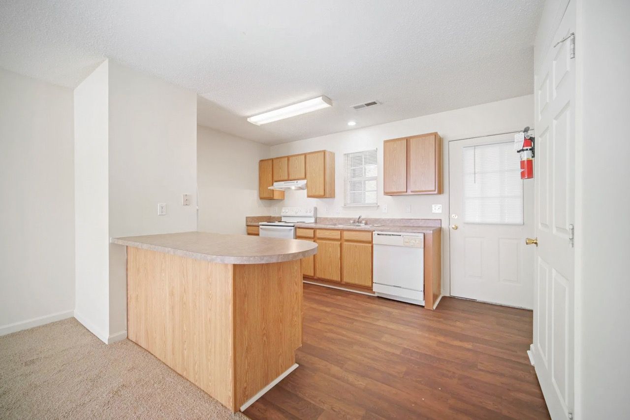Each home features open living and dining areas, a fully equipped kitchen with refrigerator, stove, and dishwasher, in-unit washer and dryer hookups, private patios, and additional storage space. Residents also enjoy large bedrooms and off-street parking.